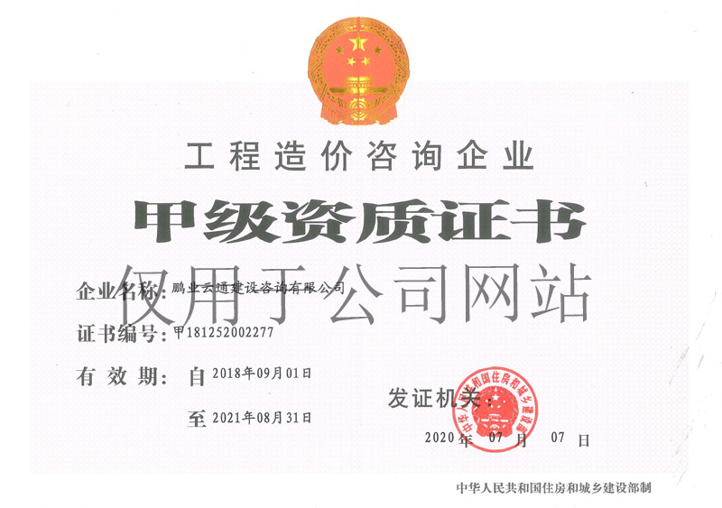 工程造價(jià)咨詢甲級(jí)資質(zhì)證書(shū)